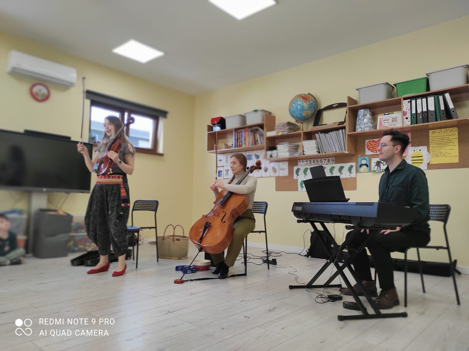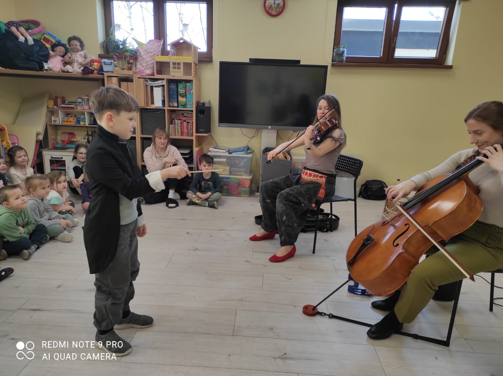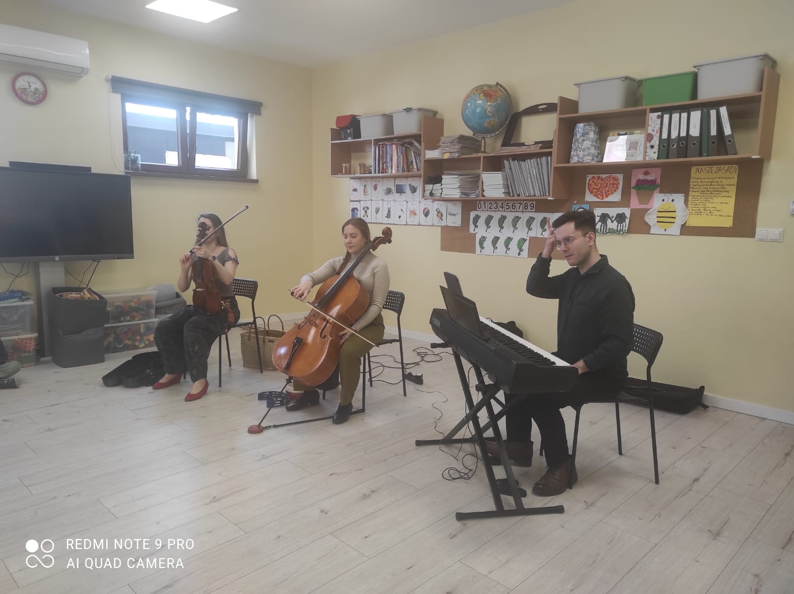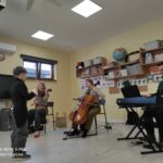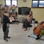 Dzieci miały okazję wysłuchać niezwykłej muzycznej bajki pt. „O psie w Filharmonii”. W tę fascynującą podróż wyruszyliśmy w towarzystwie dźwięków wiolonczeli, altówki oraz pianina, na których grali zaproszeni artyści.